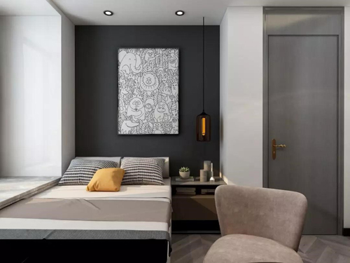 不用擔心整個空間過于冷淡,通過暖色系顏色的搭配可以達到自己追求的冷暖平衡,有溫度又通透,像極了外冷內熱的都市生活。