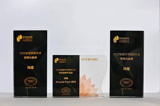 鴻雁品牌榮獲2022智能開關面板行業領導力品牌獎和2022全屋智能系統領導力品牌獎;鴻雁總裁王米成獲2022全屋智能系統態度人物獎;智能單品iHousePad 4智慧交互屏榮獲2022智能開關面板行業科技創新產品獎。