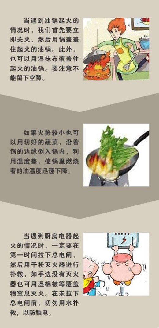 除了要學(xué)會正確排除廚房火災(zāi)隱患,我們也要學(xué)會如何正確處理廚房火災(zāi)。