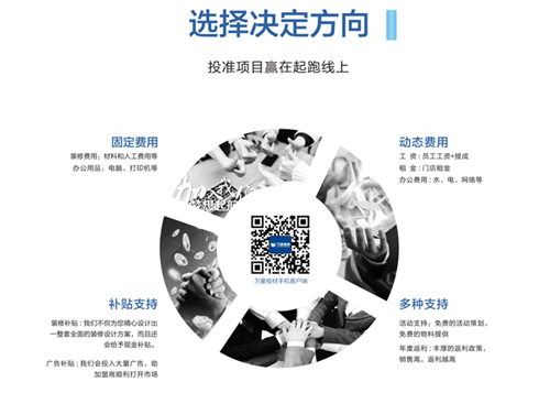 品牌支持:萬象品牌作為旺德府集團旗下木制品系列的核心品牌,同時也是“木制品專家”專業形象的集中體現。良好的品牌知名度及美譽度,讓每一加盟商可以共享到萬象品牌的無形資產優勢。