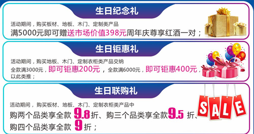 活動(dòng)期間,購買板材、地板、木門、定制類產(chǎn)品,滿5000元即可贈(zèng)送市場價(jià)值398元紅酒一對(duì);