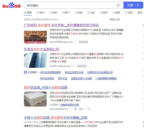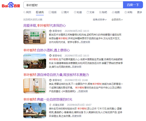 再則,我們還可通過瀏覽百度圖片、知道、文庫、貼吧等板塊的搜索結(jié)果,對豐葉板材形成一個(gè)全面、立體的認(rèn)知,深刻體會這個(gè)中國板材品牌的健康環(huán)保魅力。