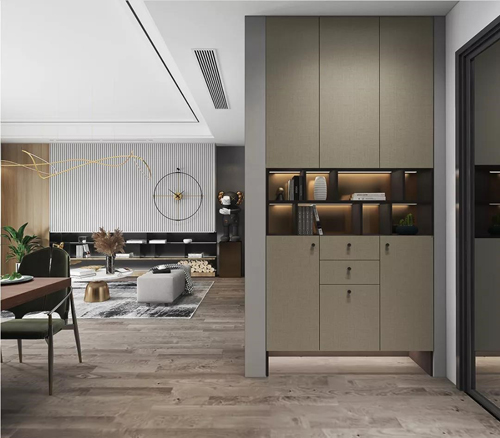 關于玄關柜的設計法則不一,大家可以按需定制、按房屋格局打造合適的收納規劃。例如底部懸空設計的玄關柜,快速安置更換下來的鞋子,又不影響家居美觀;例如一柜到頂,實力擴容,把不常用的被褥或其余物件收起來。例如中部還可采用留空設計,用于隨手置物和展示飾品和擺件,增加家里的裝飾層次感和品味。例如增加靈活層板設計,再也無懼鞋子高度不同,輕松收納各式靴子。