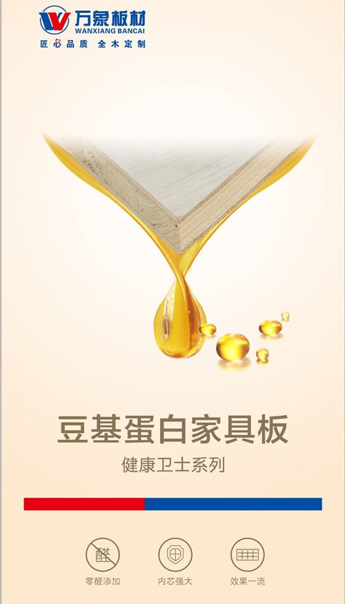 豆基蛋白家具板是在“倡導(dǎo)零甲醛生活”的產(chǎn)品品牌戰(zhàn)略下重點(diǎn)研發(fā)和推廣的新一代環(huán)保板材,真正的從產(chǎn)品源頭解決甲醛污染問題,真正實(shí)現(xiàn)甲醛的“零添加”,實(shí)現(xiàn)綠色生產(chǎn),環(huán)保健康板材。