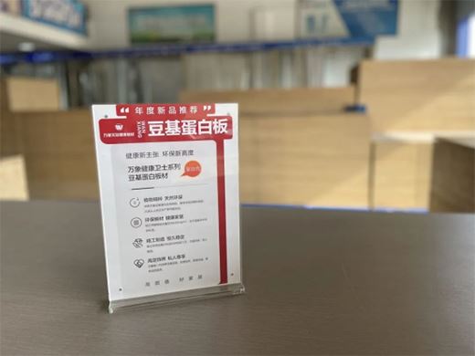 得益于萬象品牌的行業影響力與市場口碑,加之處于裝修旺季,萬象第三代豆基蛋白板材上市后反響積極,顧客進店就會咨詢有關豆基蛋白板材的信息,與之對應的訂單量也持續走高。