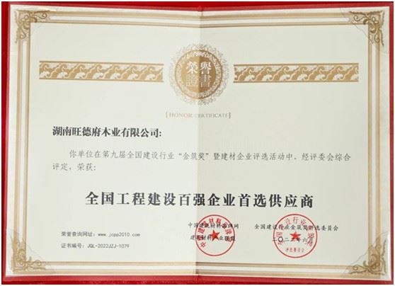 再次祝賀旺德府榮膺中國(guó)建設(shè)行業(yè)兩項(xiàng)“金筑獎(jiǎng)”獎(jiǎng)項(xiàng):“全國(guó)工程建設(shè)百?gòu)?qiáng)企業(yè)首選供應(yīng)商”、“全國(guó)綠色建材品牌”,讓我們保持昂揚(yáng)的斗志,激流勇進(jìn),勇攀高峰!