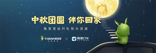 中秋正值闔家團圓之際,在外打拼的人皆紛紛歸家共享團圓時刻。就在剛剛過去的中秋佳節(jié),兔寶寶結合現(xiàn)下流行的公共出行方式,聯(lián)合高德地圖app,以優(yōu)惠派發(fā)的方式,助力千萬中秋“在路人”回家團圓。