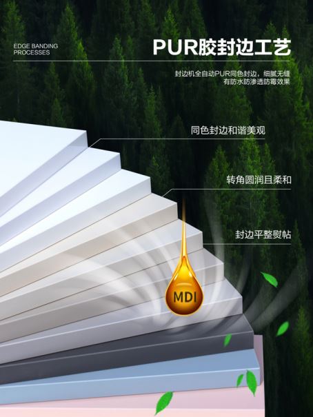 ▲所有成品柜門均為PUR膠封邊