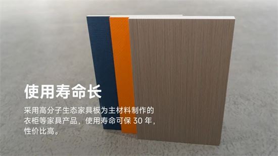 采用海螺高分子生態家具板為主材料制作的衣柜、櫥柜等家具產品,使用壽命可保30年,性價比高。