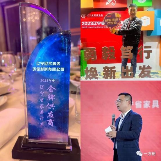 尼爾科達榮獲“2023年度遼寧省家居行業金牌供應商”稱號,集團董事長、一方樹品牌創始人隋明東出席會議,總經理鄭武代表遼寧家具民營企業在會上為振興遼寧經濟表態發言。