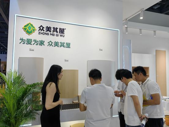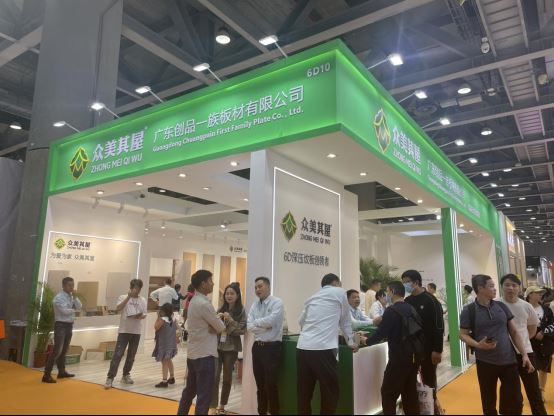“中國十大生態板材品牌”、“中國十大健康板材品牌”,眾美其屋展位人潮涌動,盛況空前,火爆的場面更是映襯了品牌實力。