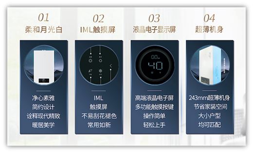 家電不僅僅是家電本身,也是家庭空間里重要的裝飾品。格瑞泰DE系列燃氣壁掛爐采用超薄機身設計,機身厚度僅有243mm(L1PB20-DE18/L1PB26-DE24),盡可能地減少了對居住面積的占據,讓人居空間更顯寬闊。時尚啞光白,靜心雅素;IML觸摸大屏,不易刮花褪色,常用如新。格瑞泰將實用性和藝術性結合,把DE系列打造成一款與家居環境相適宜的藝術品,用極簡美學讓壁掛爐能夠自然融入家居環境。