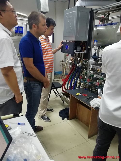 在菲斯頓領導的陪同下,工程師參觀了德國菲斯頓在中國生產基地的技術研發中心,詳細詢問和了解了相關技研情況,就新款的全預混冷凝技術、云管家系統等對菲斯頓在研發上的投入和取得的成績表示出高度欣賞。他們一邊觀看現場實驗,一邊饒有興趣地與菲斯頓研發人員親切交談,現場氛圍融洽無間。