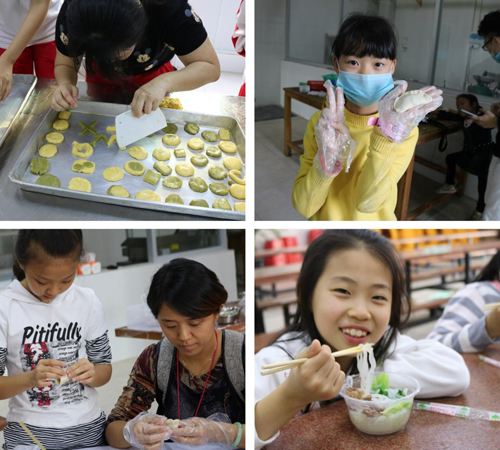 實踐活動中,家長牽手孩子們,共同親手制作美食——蛋糕、湯圓、餃子、茶果、瀨粉等,頻繁的互動、特別的協作,持續增進親子情感交流。孩子們可以體驗采摘新鮮蔬果,自己動手做飯,以及嘗試傳統的制造手藝,有著一番別樣的滋味,同時也鍛煉了自己的生活技能。