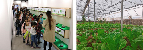 不僅如此,學生還能零距離參觀和接觸古代農耕農具、感悟農耕歷史文明;來到種子園和蔬菜大棚種植園,認識各類蔬果從一顆種子到長大以后的生長情況;園區設有影視廳,能同時容納110人,放映科普電影。豐富的教育內容,意在培養孩子珍惜糧食意識,提升他們對飲食健康的重視程度,讓他們在一趟“食安研學”過程中獲益頗豐。
