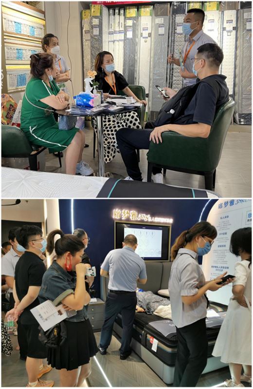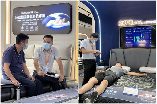 客商們零距離接觸席夢(mèng)雅的匠心軟體家具產(chǎn)品,親自觸摸床墊柔軟透氣的面料,親自體驗(yàn)席夢(mèng)雅“588+測(cè)試睡眠系統(tǒng)”,屏幕上顯示人體的心跳頻率、呼吸頻率、體動(dòng)頻率等參數(shù),席夢(mèng)雅向現(xiàn)場(chǎng)的客商證明了什么是“360°睡眠定制”。