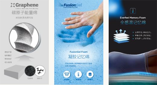 在新材料、新技術(shù)上不斷突破,除舒達三大核心技術(shù)外,碳原子能量綿、凝膠記憶綿、全感溫記憶綿、黃金乳膠等多種“黑科技”,都運用于床墊生產(chǎn)。