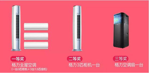 福利不斷,精彩不斷!活動期間顧客消費下定每滿2000元可獲得一張“格力空調任性享”抽獎券,買得越多,獎券越多,中獎幾率越高。格力全屋空調、格力3匹柜機、格力空調扇陪您冰爽一夏。