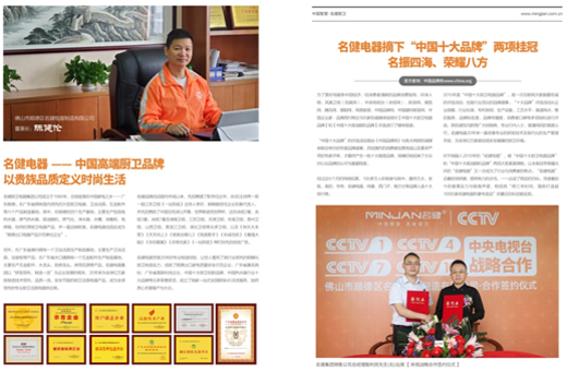 名健電器選擇登上《環(huán)球人物》雜志,力求借助其背后廣闊的讀者資源和巨大的傳播價值,優(yōu)雅大方地展示自身的魅力和優(yōu)勢,為品牌營銷“插上飛翔的翅膀”。當(dāng)然,名健電器深耕廚衛(wèi)電器領(lǐng)域20年的故事也吸引和感動著《環(huán)球人物》的采編部,后者決意讓這個榮膺2019年“中國十大廚衛(wèi)電器品牌”和“中國十大吸油煙機(jī)品牌”,以及作為CCTV-1、CCTV-4、CCTV-7、CCTV-10四大央視頻道簽約展播的匠心品牌現(xiàn)身雜志的重要版面,用文字和圖片的力量記錄其品牌的心路歷程,向大眾“揮一揮手”。