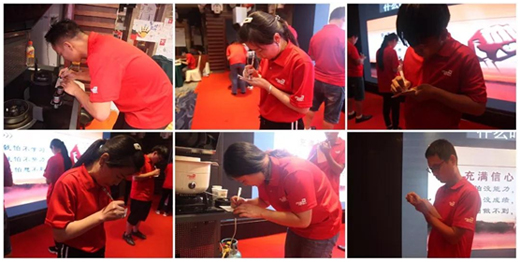 有學(xué)員為了能夠通過考試,當晚通宵練習,有的把電視當煙機,有的把衣服當灶具,有的在廁所對著鏡子練習。此次考試80分為合格線,大部分學(xué)員在經(jīng)過魔鬼式的訓(xùn)練之后順利通過考試,最高分達到98分,但仍有學(xué)員考試不合格。