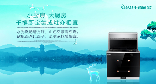 恰到好處的搭配,這不禁讓我們想起了集吸油煙機、燃氣灶、消毒柜、儲藏柜等多種功能于一體的千禧廚寶集成灶。