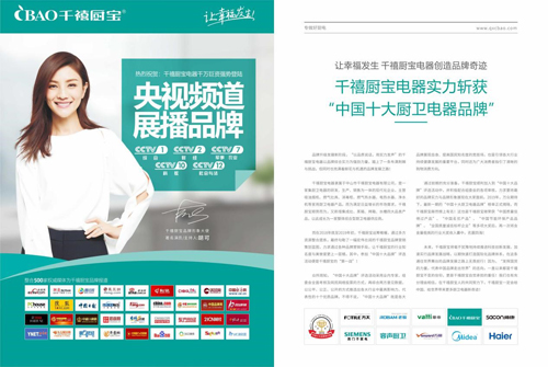 《環(huán)球人物》雜志由人民日報(bào)社主管、主辦,是國內(nèi)發(fā)行量最大、最具權(quán)威性和影響力的綜合時(shí)政類期刊,其為廣大讀者提供了一個(gè)深入了解政治、經(jīng)濟(jì)、社會(huì)、文化領(lǐng)域各大高端人物的閱讀平臺(tái)。千禧廚寶電器喜登《環(huán)球人物》,有口皆碑!