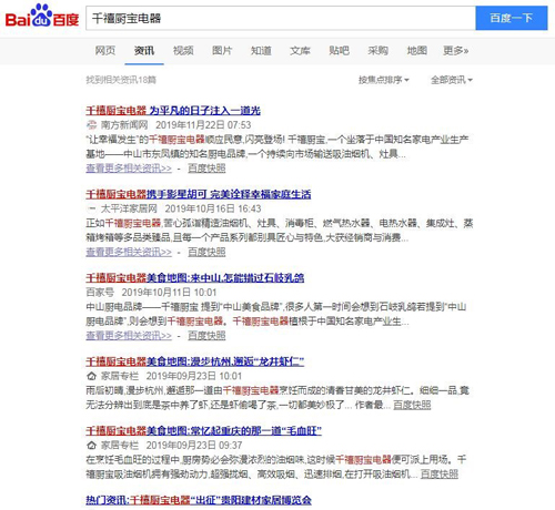 百度、谷歌、搜狗等七大搜索引擎全網(wǎng)覆蓋,千禧廚寶電器的官網(wǎng)、資訊、視頻、圖片、線上購物平臺(tái)一搜即得,方便快捷!