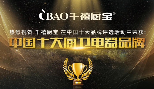 千禧廚寶電器在由知名行業(yè)網(wǎng)站《中國品牌網(wǎng)》主辦、《中國建材家居網(wǎng)》、《中國品牌招商網(wǎng)》等數(shù)家人氣網(wǎng)站協(xié)辦的“中國十大品牌”評選活動(dòng)中,一舉斬獲“中國十大廚衛(wèi)電器品牌”榮譽(yù)稱號,名聲大振!