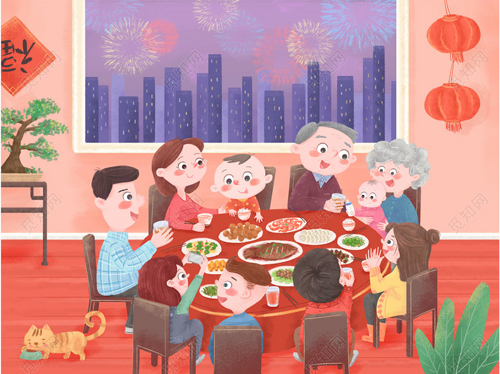 “相隔千里終團圓,共坐檀桌前。舉筷入口皆思念,同襯此時意。”