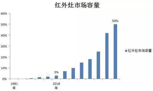 隨著新生代消費(fèi)勢(shì)力的快速崛起,節(jié)能環(huán)保、科技時(shí)尚、智能便捷的高端廚衛(wèi)產(chǎn)品形成了新的需求熱點(diǎn)。更值得關(guān)注的是,節(jié)能、低碳的紅外灶,越來越受到消費(fèi)者青睞以及政府的重視和支持。目前紅外灶的市場(chǎng)銷量增速明顯高于普通的大氣式燃?xì)庠睢?jù)業(yè)內(nèi)人士分析預(yù)估,紅外線灶的市場(chǎng)份額將從2018年的3%迅速擴(kuò)張至50%,是廚電市場(chǎng)一個(gè)新的增長(zhǎng)點(diǎn),在日趨成熟飽和的廚衛(wèi)市場(chǎng)中必定能開辟出一片藍(lán)海之地,穩(wěn)占我國(guó)灶具行業(yè)將來的“半壁江山”。