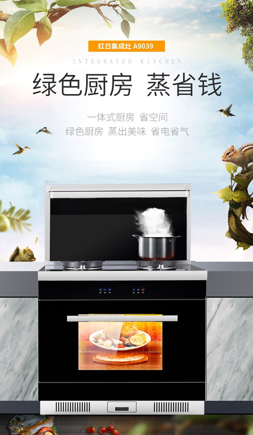 紅日紅外線一體式集成灶A(yù)9039,將采用了紅日自主研發(fā)的紅外光波技術(shù)、熱效率高達(dá)68%的紅外線燃?xì)庠睢⑽鼉袈士蛇_(dá)99.96%的大吸力煙機(jī)和全方位熱能包裹的8種烹飪模式蒸箱,創(chuàng)新地有機(jī)結(jié)合為一體,給用戶帶來便捷、健康、安全的烹飪體驗(yàn)。同時(shí),其具有煙灶聯(lián)動(dòng)、煙蒸聯(lián)動(dòng)、防回火保護(hù)、定時(shí)防干燒、漏電保護(hù)等多項(xiàng)安全設(shè)計(jì),告別廚房危險(xiǎn),真正做到讓消費(fèi)者用得放心。
