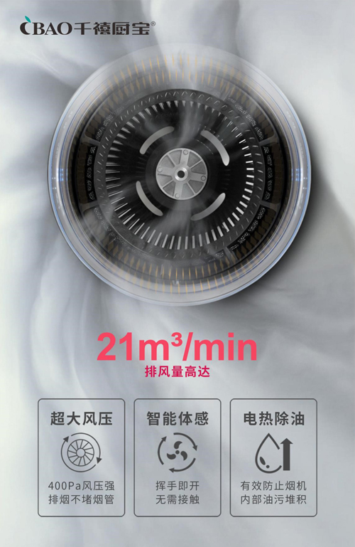 (2)利用電熱高溫、高效傳導技術原理,賦予煙機高效的電熱除油效果;