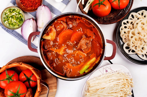 將番茄去皮,慢慢燉成醬,后又加入牛腩、土豆、胡蘿卜等材料,以精準的灶具火候熬煮近1小時,便能煮出味美湯濃的番茄牛腩湯。在烹煮的過程中,切記不可急躁,需施以恰當的火力、合適的時間加持,才能熬煮出最佳的精華湯汁。