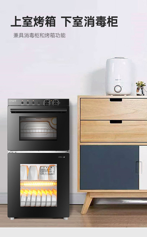 其次,從功能性上來看,消毒柜的存在對于大部分家庭來說相當有必要。每天我們都會使用洗潔精洗掉餐具表面的油漬污漬,但這種清潔劑并不能根除停留在餐具表面的細菌。老人和小孩免疫力普遍較低,在餐具安全上應投入更多的關注。創爾特烤消一體機125°高溫配紅外線消毒,28L烤箱+37L消毒柜完全可以滿足一般家庭餐具的消毒需求。