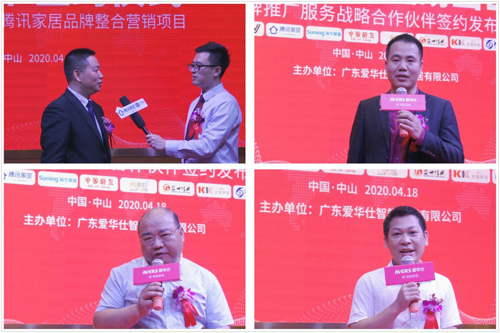 跨入新時代,愛華仕啟動品牌打造的新規劃,重點開展營銷整合新旅程。在簽約會上愛華仕領導人分別與權威電視媒體、盛世經典品牌策劃公司、騰訊家居媒體、中國廚衛、順的、快可立服務、蘇寧幫客、神舟聯保達成戰略合作,加速品牌化和服務化的進程。