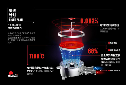 紅日紅外線灶,凝聚了39年的研發(fā)智慧,其搭載的關(guān)鍵技術(shù)“高紅外發(fā)射率多孔陶瓷節(jié)能燃燒器技術(shù)”,攀登上“全國十大最佳節(jié)能技術(shù)”排行榜。它不產(chǎn)生明火,但火力和熱效率遠(yuǎn)超普通大氣式爐灶和電磁爐,并且節(jié)能效果高于國家一級能效。由于紅外灶的助力,烹飪時(shí)鍋底升溫加快、提升炒菜效率,高度保留食材營養(yǎng),同時(shí)無明火特性降低了廚房悶熱氛圍。