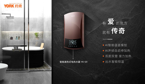 本次展會約克重磅推出經過升級改良的速熱“傳奇”系列。為滿足個性化高端用戶市場的智能化體驗需求,YORK約克技術團隊歷時2年研發測試驗,推出升級版速熱式電熱水器——“傳奇系列”,其不僅以獨特時尚的超跑弧面外觀和24厘米的超薄厚度圈粉無數,驚艷行業,更是以獨立雙膽雙管交替加熱、25L雙獨立藍金圭搪瓷內膽及其獨特的外聯接管結構,與傳統速熱式相比,真正實現加熱快一倍、熱水多一倍的舒適體驗,熱水持續源源不斷,充分滿足無需等待、多人家庭連續洗浴的理想效果;傳奇系列采用的是內置電子恒溫閥,可實現±0.5℃的精準恒溫;在智能化上,約克傳奇系列采用進口AI智能芯片,實現±0.5℃精準恒溫、人機交互式體驗和自動感知環境溫度的功能,如“語音控制、聲偵自啟停加熱”等創新已經成為引領行業潮頭的智能配置。可以說約克傳奇系列在本次展會的閃亮登場,為本次順德家電展平添一股與眾不同的熱水智能化新氣象。