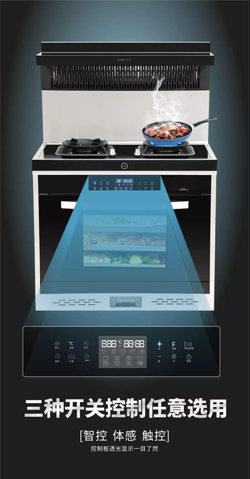 樂鈴多功能一體集成灶“交互智能+蒸烤一體”,讓人體驗到了前所未有的科技未來感。不僅是智能聯(lián)動技術(shù)本身,更能在烹飪過程中,兼顧年輕消費者對于個性時尚的“好奇心”:智控、體感、觸控三種開關(guān)控制任意選用,控制板透光顯示一目了然。樂鈴多功能一體集成灶無疑給用戶帶來在外觀、功能和體驗上的極致享受。