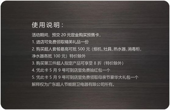 更多活動信息,請咨詢全國各地超人節能廚衛專賣店。