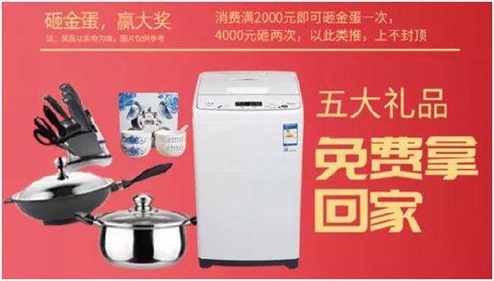 活動期間:購買滿2000元,砸金蛋1次;滿4000元,砸金蛋2次,以此類推(中獎者必須合照轉發朋友圈)。