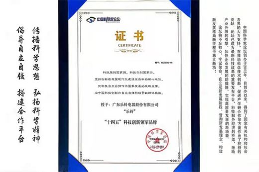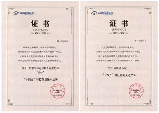 廣東樂鈴電器股份有限公司董事長陳明俊先生應(yīng)邀出席了本屆中國科學(xué)家論壇大會(huì),并在本次論壇大會(huì)上,分別榮獲了“‘十四五’科技創(chuàng)新先進(jìn)個(gè)人”和“‘十四五’科技創(chuàng)新領(lǐng)軍品牌”兩大獎(jiǎng)項(xiàng)!