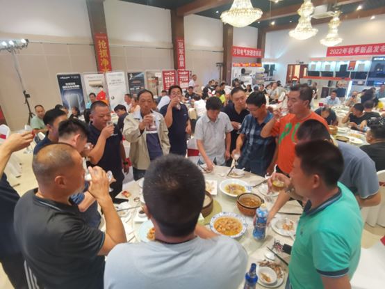 銀田廚電衛(wèi)浴本次首場開盤會議得以圓滿成功,離不開這樣一群人:他們奔波勞碌,毫無怨言;他們不斷超越,勇攀高峰;他們是銀田總部與揚州嘯飛團隊,更是家人。在這場活動中,他們以智慧指引方向,以豁達引領(lǐng)團隊,為2022年銀田廚電衛(wèi)浴品牌的蝶變努力奮戰(zhàn),創(chuàng)造更多的奇跡,開辟更多的可能。在慶功晚宴上,他們一起舉杯共飲,是對自己努力終有收獲的肯定,更是對所有辛勤付出者的感謝。