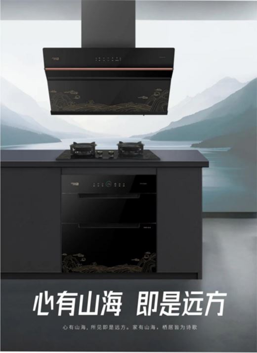 集品設計的陳總說:超人《山海經》套裝廚電,用線描方式,勾勒出萬里江山、新國風的視覺效果,以獨特的眼光挖掘出中華優秀傳統文化的寶貴價值,在文博、繪畫、文學和非遺傳承中探尋和提煉符合當代視角的審美精髓,打造出了符合現代精英消費群體對東方美學與家居用品極致融合的精品力作。