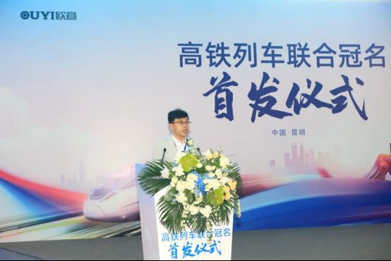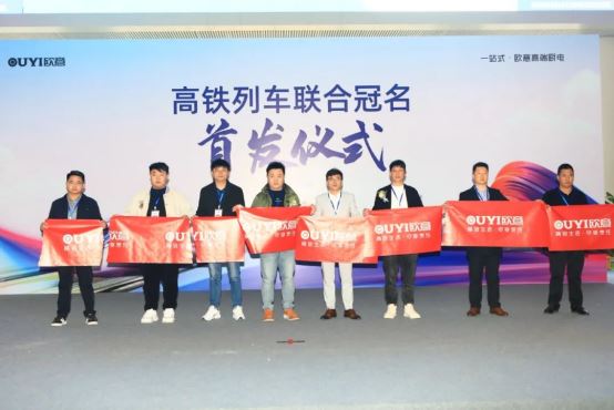 歐意總裁蔣惠興、總經(jīng)理王飛,河南鄭州協(xié)德商貿(mào)有限公司董事長鄧韶聰,陜西漢唐空間商貿(mào)有限公司董事長張郁松,四川百潤電器有限公司董事長朱俊波,新浙豪特廚衛(wèi)電器有限公司董事長董亞兵,云南歐意運營中心總經(jīng)理何勝建,以及永達傳媒西南戰(zhàn)區(qū)副總經(jīng)理兼昆明公司總經(jīng)理王浩上臺為“歐意廚電”高鐵冠名列車首發(fā)儀式剪彩。