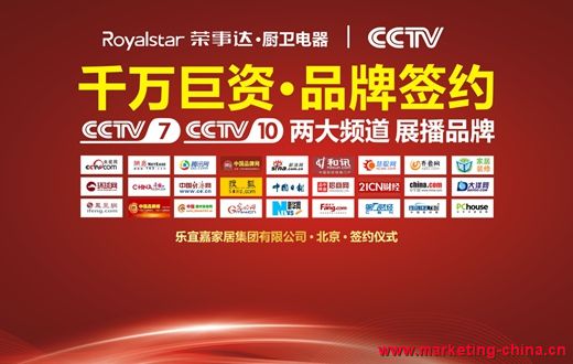樂宜嘉家居集團有限公司旗下的榮事達廚衛電器與中國中央電視臺達成合作,隆重在京舉行簽約儀式,這意味著榮事達廚衛電器的品牌傳播邁入了一個新時代。今年,榮事達廚衛電器品牌將登陸央視人氣頻道進行品牌展播,通過央視這個國家級的媒體平臺把榮事達廚衛電器的品牌文化傳播到千家萬戶!