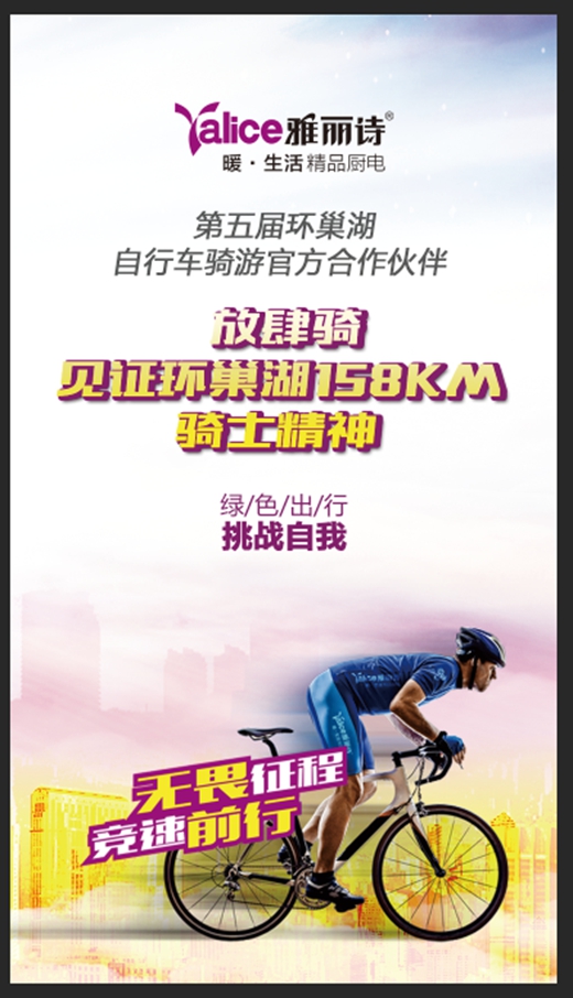 雅麗詩精品廚電作為中華民族品牌中的佼佼者,其近年來不僅不斷強(qiáng)化自身“內(nèi)功”,以科技為導(dǎo)向,以顧客為中心創(chuàng)新研發(fā)新品,為消費(fèi)者帶來更多優(yōu)質(zhì)廚電產(chǎn)品;此外,為提升“雅麗詩”的品牌價(jià)值,將雅麗詩品牌“高端、活力、綠色”的品牌形象植入到全世界消費(fèi)者的心中,雅麗詩更加以實(shí)際行動(dòng)融入到各種社會(huì)活動(dòng)中。自2017年與國(guó)際賽事——環(huán)海南島公路自行車賽達(dá)成合作后,本次環(huán)巢湖自行車騎行是雅麗詩品牌再次與綠色騎行活動(dòng)的合作,多次參與綠色騎行活動(dòng)正是雅麗詩品牌深入打造以“騎行精神”為企業(yè)精神的重要體現(xiàn)!將綠色活動(dòng)進(jìn)行到底,傳承綠色文化,打造綠色品牌!雅麗詩一直在路上,無懼征程、極速前行、超越自我、挑戰(zhàn)極限!