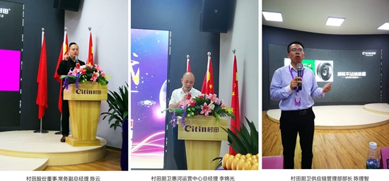 當天,村田股份董事·常務副總經理陳云先生、村田廚衛供應鏈管理部部長陳理智先生、村田廚衛華南片區總監胡松先生、村田惠河運營中心總經理李錦光先生、村田廚衛惠河大區總監智建立先生出席了本次會議。