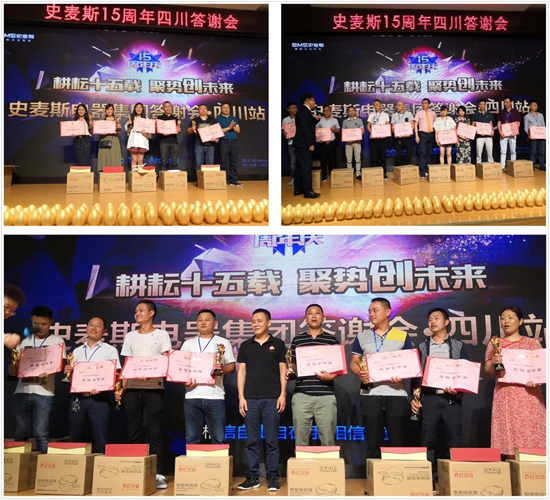 近年來,史麥斯電器在四川區域發展勢頭迅猛,這其中離不開各大經銷商家人們的努力。為嘉獎表現出色的經銷商們,會上,莫總、胡總以及王總共同為“優秀經銷商”、“最佳合作獎”以及“最佳銷售獎”的獲得者頒發了獎項。