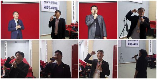 “一種組織能力是叫站在未來看現在,布局未來,一定要有看到趨勢的能力。第二個組織能力是以客戶的視角看自己,第三個組織能力則是自我認知,不斷地激發員工向上的張力,自我超越。”會議中,營銷總監羅健率領新當選的營銷中心管理團隊宣誓就職。羅總監表示,將帶領大家全力以赴,全面貫徹落實3.0版133營銷戰略,為2019業績翻番全力護航。