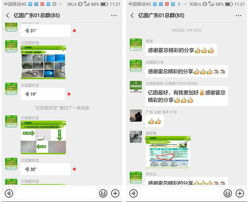 “防疫宅家不掉崗,線上學習提升快”,億固總部結合終端實際情況制定詳細培訓計劃,通過微信群進行授課培訓。其內容涵蓋產品賣點塑造、門店營銷、渠道維護、產品培訓等,課程實用高效,獲得一致好評。